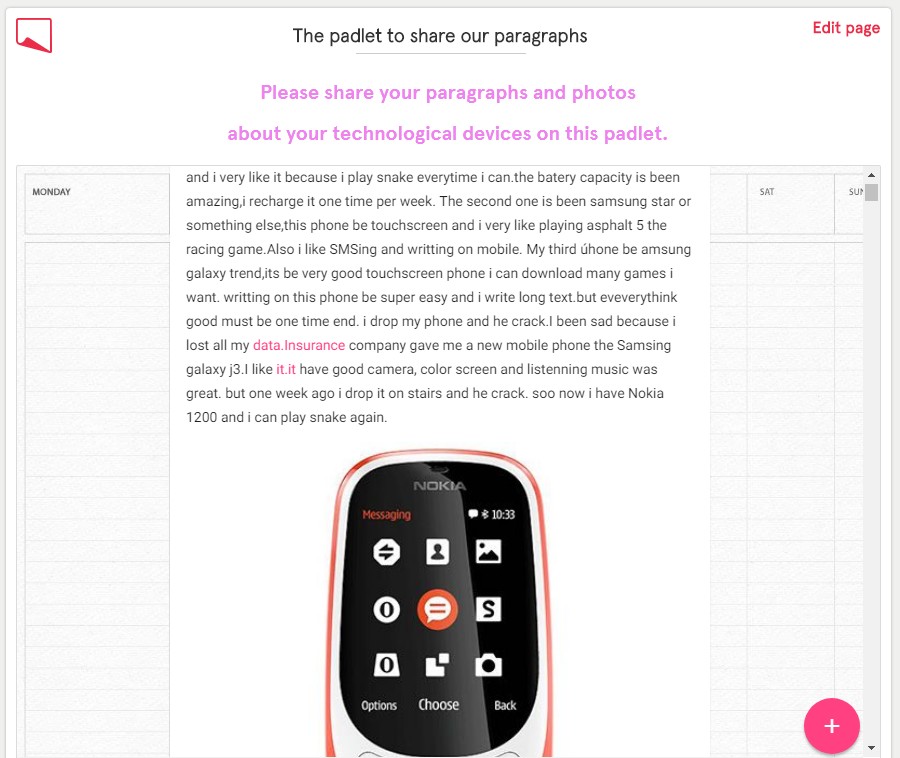 Today we were in theIT room and worked on another project task - we wrote on a common Padlet noticeboard about our favourite technological devices. It was also interesting to read their about the devoces that our partners like.